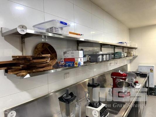 SECTION OF STAINLESS STEEL 2 TIER WALL SHELVING
