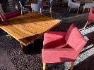 2 x COMO OTWAY GARNET COLOURED FABRIC DINING ARM CHAIRS