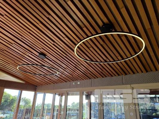 2 x DESIGNER SUSPENDED CIRCULAR CEILING LIGHT FITTINGS