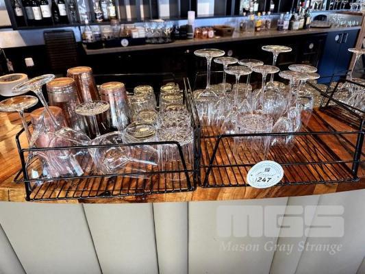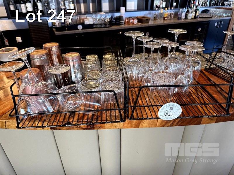 2 x GLASS TRAY & CONTENTS OF ASSORTED GLASSWARE, TUMBLERS, ETC