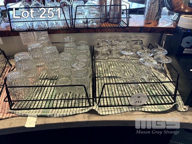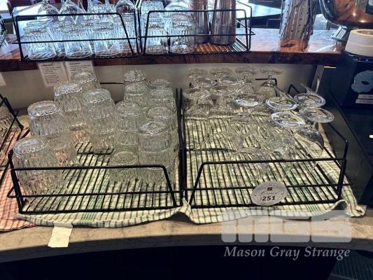 2 x GLASS TRAY & CONTENTS OF ASSORTED GLASSWARE, WINE GLASSES & TUMBLERS
