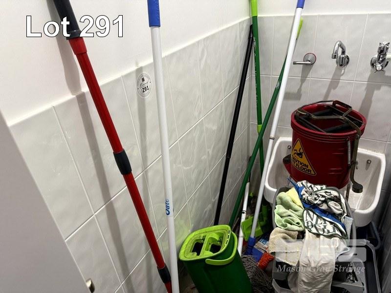 ASSORTED CLEANING ITEMS, MOPS, BUCKETS & CHEMICALS