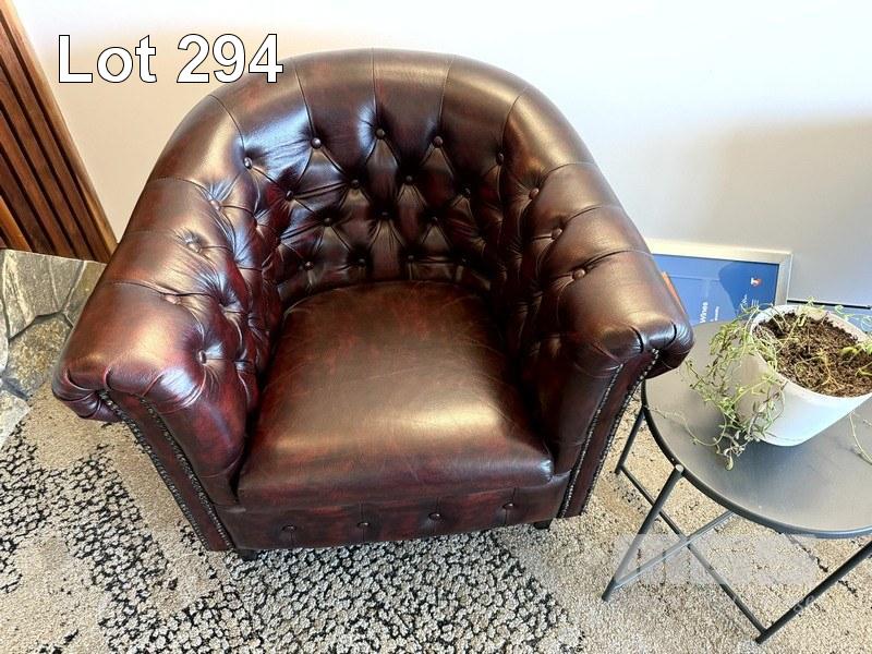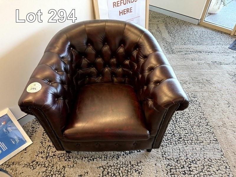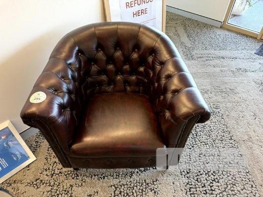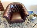 2 x RED BURNISHED LEATHER STUDDED CHESTERFIELD TUB CHAIRS