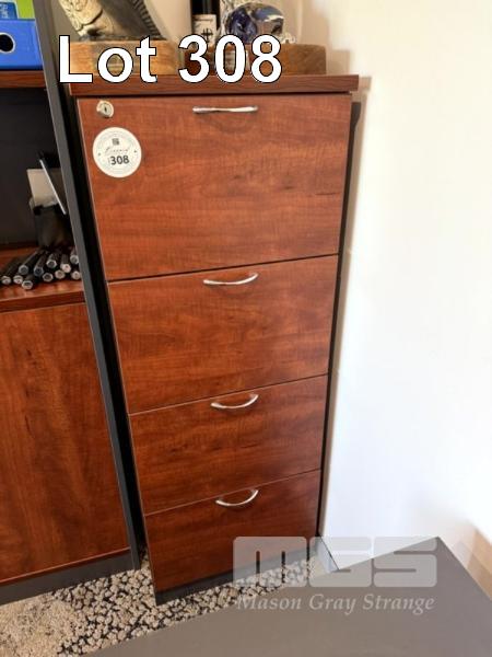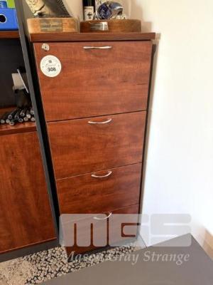 ROSEWOOD & GREY LAMINATE 4 DRAWER OFFICE FILING CABINET WITH MATCHING ROSEWOOD & GREY LAMINATE BOOKCASE