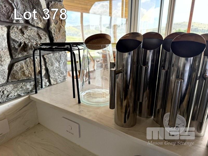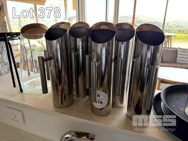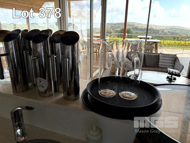 7 x STAINLESS STEEL WATER PITCHERS, 2 x GLASS JUGS & WATER DISPENSER