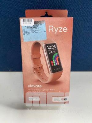 SMART WATCH, RYZE ELEVATE FITNESS & WELLBEING - ROSE GOLD WITH PINK STRAP, RZ-ELPK (RRP $88) (BOXED) (SUBJECT TO INSURANCE CLAIM)