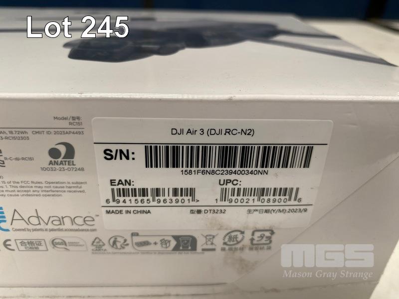 DRONE, DJI AIR 3 (DJI RC-N2) (RRP $1,298) (BOXED) (SUBJECT TO INSURANCE CLAIM) S/N:1581F6N8C239400340NN