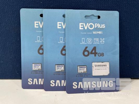 3 x SAMSUNG EVO PLUS 64GB MICRO SD CARDS