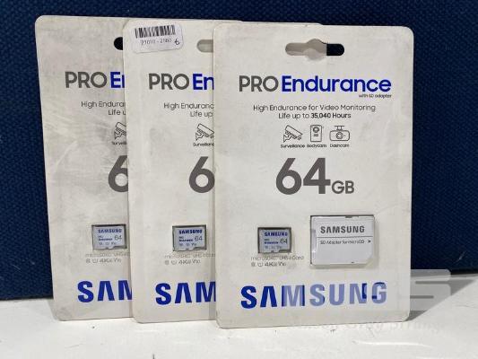 3 x SAMSUNG 64GB PRO ENDURANCE MICRO SD CARDS