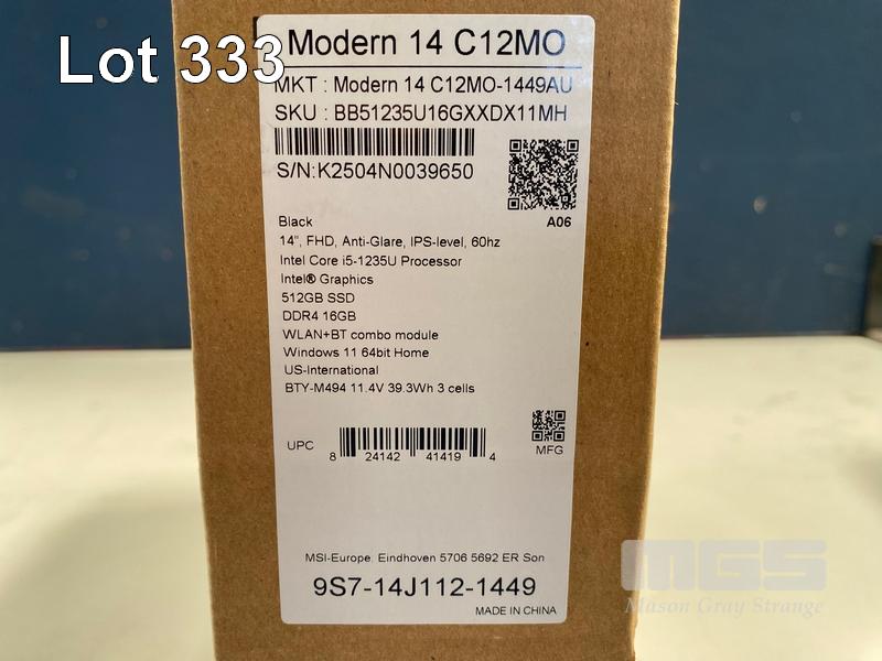 LAPTOP, MSI MODERN 14 C12MO-1449AU NBK BLACK, CORE i5 1235U, 16GB RAM, 512GB SSD, 14 INCH, WINDOWS 11 HOME (RRP $999) (BOXED) (SUBJECT TO INSURANCE CLAIM) S/N:K2504N0039650