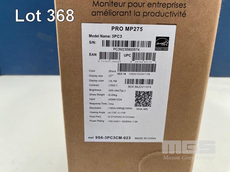 MONITOR, MSI PRO 27 INCH MP275 FHD 100HZ - BLACK, MON-MSI-MP275 (RRP $199) (BOXED) (SUBJECT TO INSURANCE CLAIM) S/N:PC3M235900574