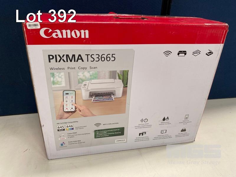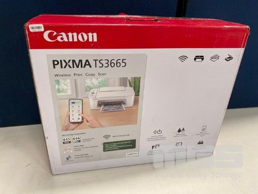 PRINTER, CANON PIXMA 3-IN-1 - WHITE, TS3665 (RRP $68) (BOXED) (SUBJECT TO INSURANCE CLAIM)