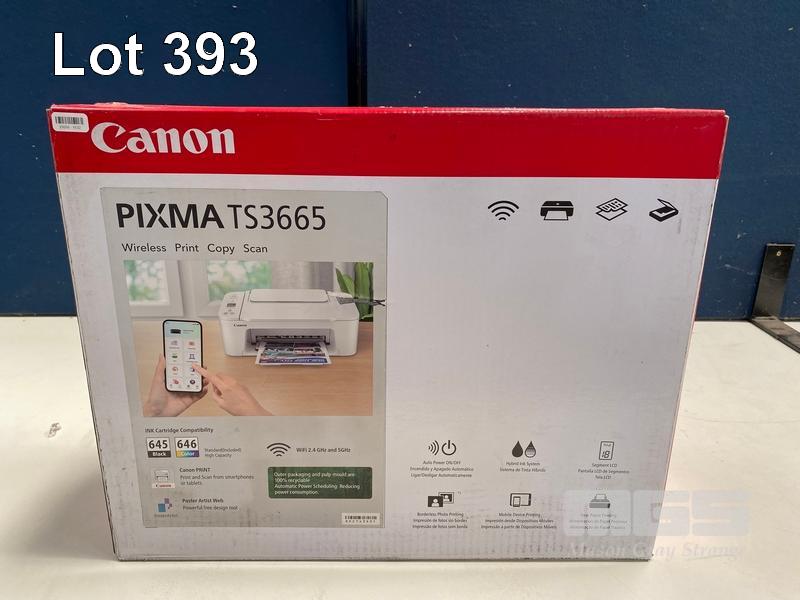 PRINTER, CANON PIXMA 3-IN-1 - WHITE, TS3665 (RRP $68) (BOXED) (SUBJECT TO INSURANCE CLAIM)