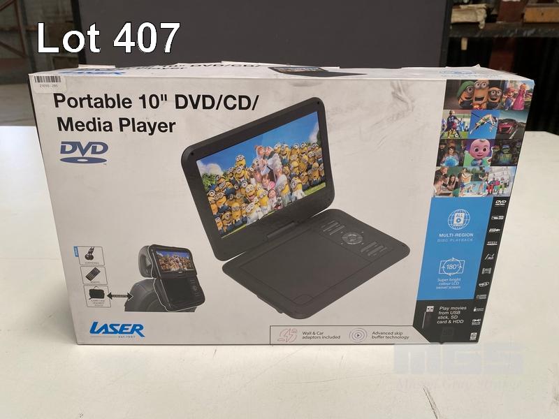 PORTABLE DVD PLAYER, LASER 10-INCH, DVD-PT-10D (RRP $169) (BOXED) (SUBJECT TO INSURANCE CLAIM)
