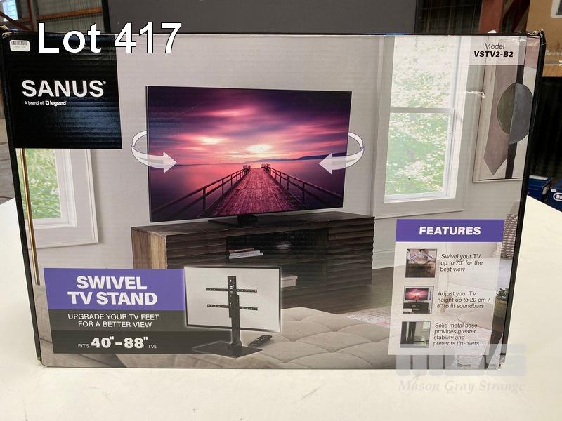 TV STAND, SANUS PREMIUM SWIVEL TV STAND FOR 40-INCH TO 86-INCH TV, VSTV2-B2 (RRP $295) (BOXED) (SUBJECT TO INSURANCE CLAIM)