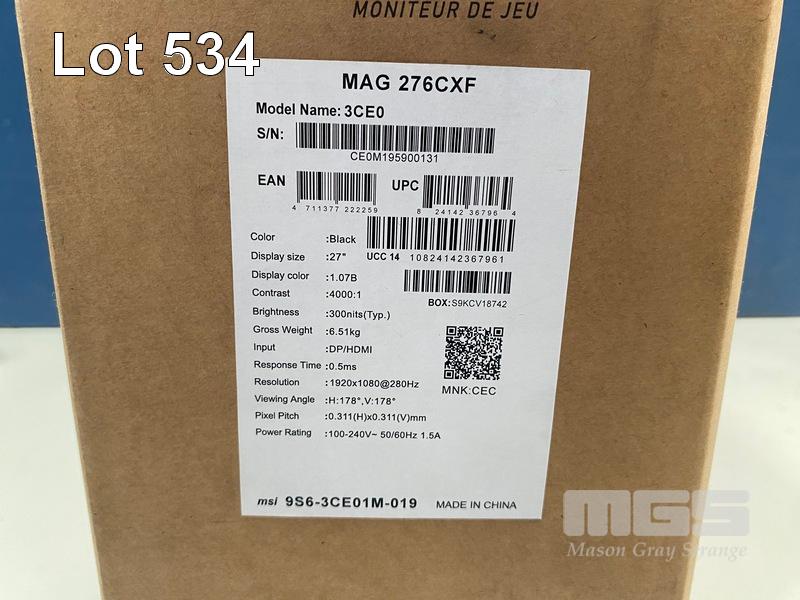 MONITOR, MSI MAG 276CXF 27 INCH FHD 280HZ CURVED GAMING, MON-MSI-M276CXF (RRP $359) (BOXED) (SUBJECT TO INSURANCE CLAIM) S/N:CE0M195900131