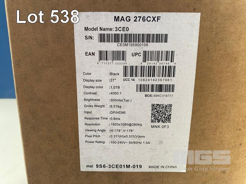 MONITOR, MSI MAG 276CXF 27-INCH FHD 280HZ CURVED GAMING, MON-MSI-M276CXF (RRP $359) (BOXED) (SUBJECT TO INSURANCE CLAIM) S/N:CE0M195900106