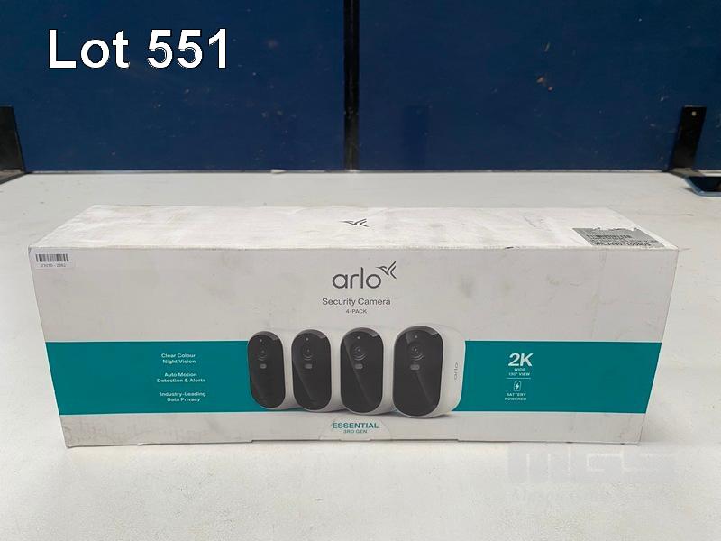 SECURITY CAMERA, ARLO ESSENTIAL 2K (3RD GEN) OUTDOOR - 4 CAMERA PACK, VMC3480-100AUS (RRP $528) (BOXED) (SUBJECT TO INSURANCE CLAIM) S/N:AKC25872D1E5C