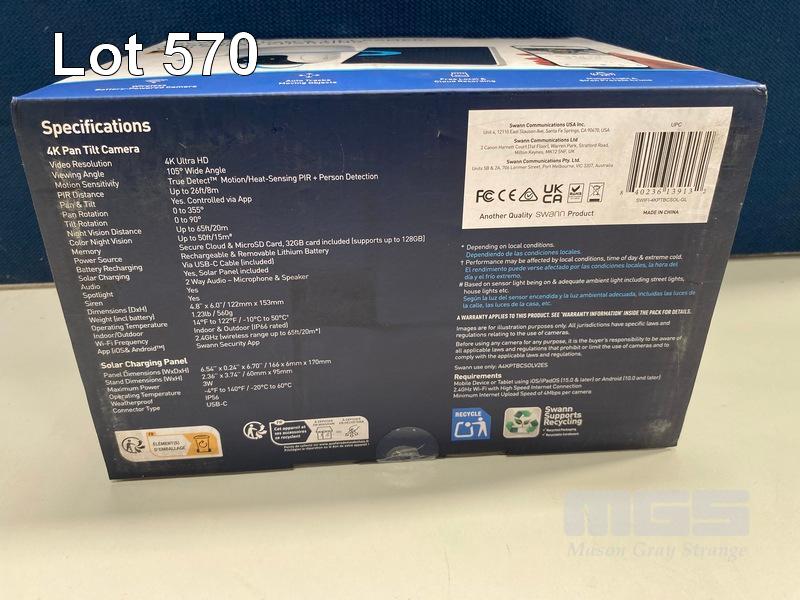 SECURITY CAMERA, SWANN WIRELESS 4K PAN AND TILT WITH SOLAR CHARGING