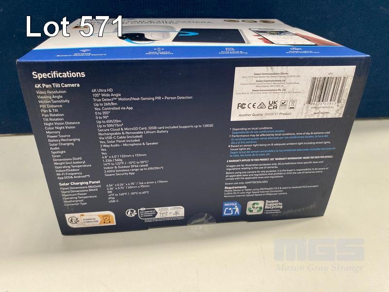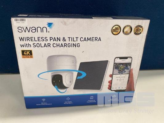 SECURITY CAMERA, SWANN WIRELESS 4K PAN AND TILT WITH SOLAR CHARGING