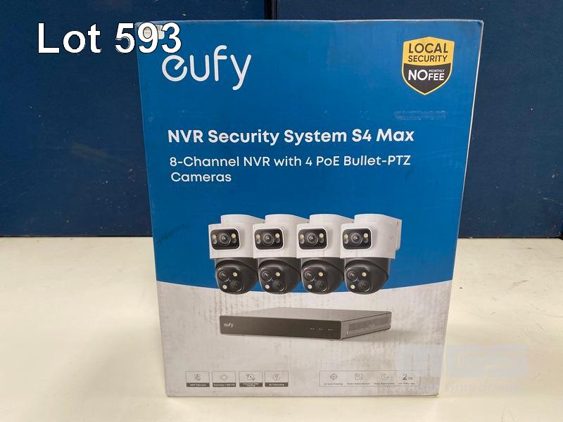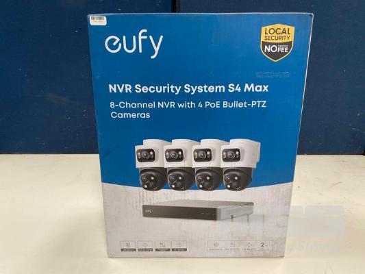 SECURITY SYSTEM, EUFY S4 MAX NVR POE 24/7 WITH 4 PTZ SECURITY CAMERAS, E8E00T21 (RRP $1,998) (BOXED) (SUBJECT TO INSURANCE CLAIM)