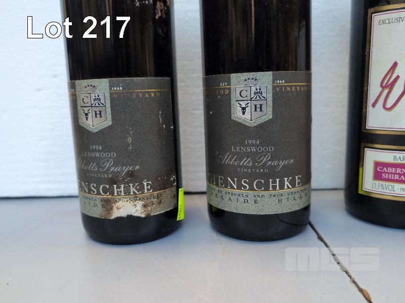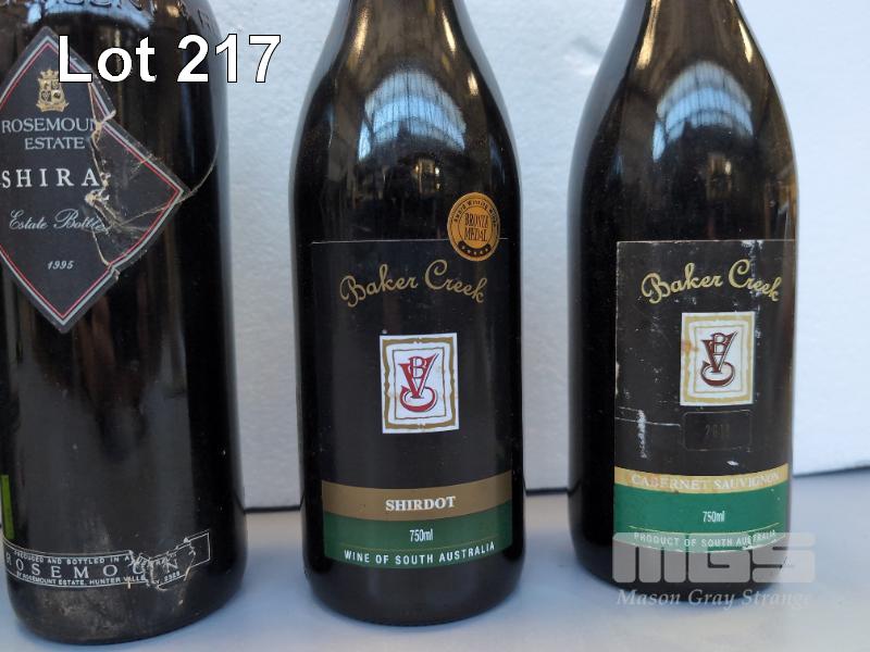 COLLECTABLE WINES 2 X 1994 HENSCHKE "ABBOTS PRAYER" LENSWOOD (MERLOT CABERNET SAUVIGNON) 2 X 1995 ELDERTON BAROSSA VALLEY CABERNET SAUVIGNON SHIRAZ MERLOT 1 X 1995 ROSEMOUNT ESTATE SHIRAZ 1 X 2010 BAKER CREEK SHIRDOT (ADELAIDE HILLS - TUNGKILLO) 1 X 2011 BAKER CREEK CABERNET SAUVIGNON (ADELAIDE HILLS - TUNGKILLO)