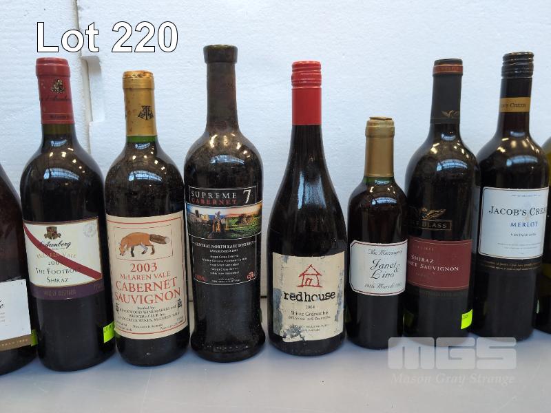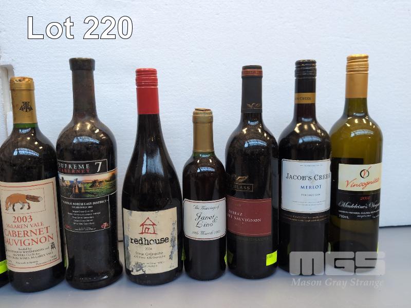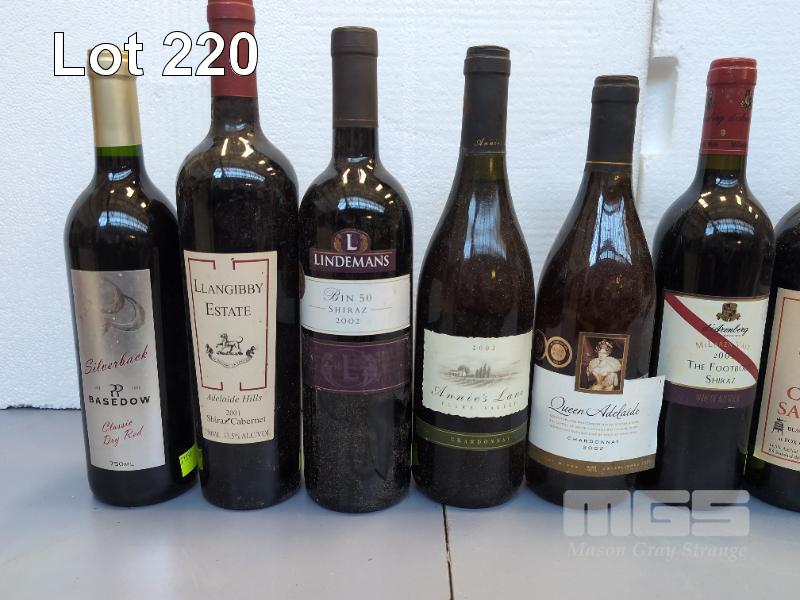 COLLECTABLE VINTAGE WINES 2000s 1 X 2001 LLANGIBBY ESTATE ADELAIDE HILLS SHIRAZ CABERNET 1 X 2002 LINDEMANS BIN 50 SHIRAZ 1 X 2002 ANNIES LANE CLARE VALLEY CHARDONNAY 1 X 2002 QUEEN ADELAIDE CHARDONNAY 1 X 2003 D'ARENBERG "THE FOOTBOLT" SHIRAZ (MCLAREN VALE) 1 X 2003 MCLAREN VALE CABERNET SAUVIGNON (BLACKWOOD WINEMAKERS CLUB BOTTLING) 1 X SUPREME 7 CABERNET (VINTAGE UNCERTAIN, POSSIBLY 2003 - HIGH SCHOOL BOTTLING) 1 X 2004 REDHOUSE SHIRAZ GRENACHE (BAROSSA MCLAREN VALE) 1 X 2004 WOLF BLASS RED LABEL SHIRAZ CABERNET SAUVIGNON 1 X "THE MARRIAGE OF JANET & LINO" (375 ML - RELABELLED WEDDING WINE ORIGINAL WINE/VINTAGE UNKNOWN) 1 X 2006 JACOB'S CREEK MERLOT 1 X 2007 VINCOGNITA MADELEINE'S VIOGNIER (FLEURIEU) 1 X NV BASEDOW "SILVERBACK" CLASSIC DRY RED