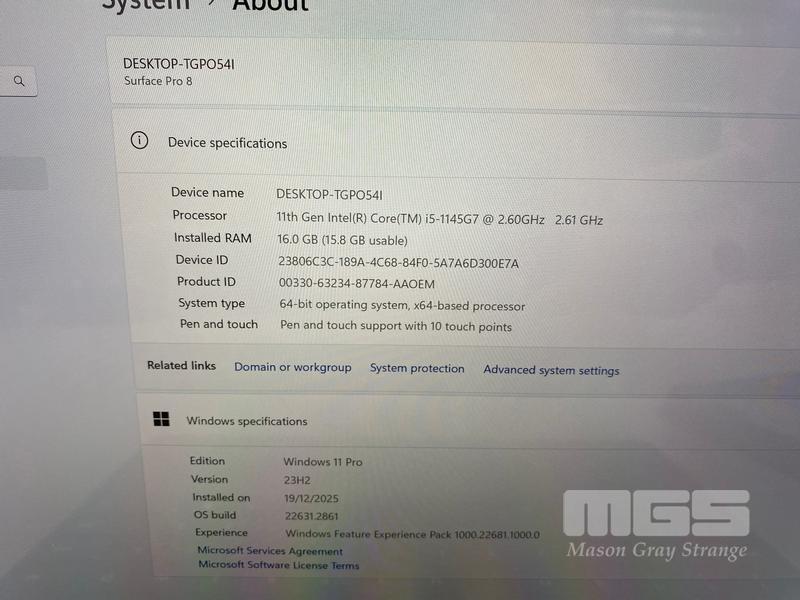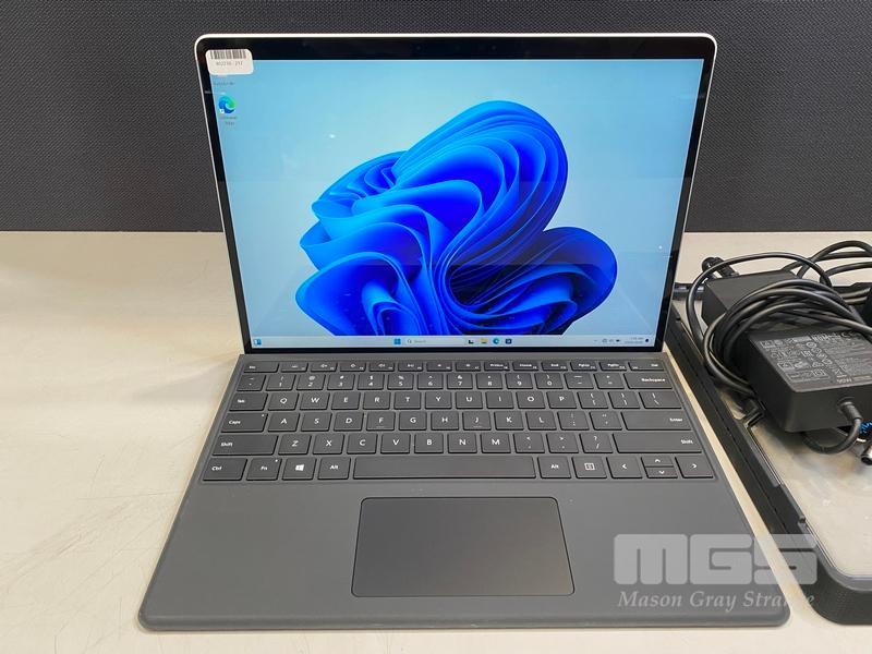 TABLET PC, MICROSOFT SURFACE PRO 8, MODEL 1982, CORE i5 1145G7 (11TH GEN) @ 2.6GHz, 16GB DDR4 RAM, 256GB NVMe M.2 SSD, 13" TOUCHSCREEN (2880x1920), INTEL IRIS Xe GRAPHICS, Wi-Fi, CELLULAR, BLUETOOTH, WINDOWS 11 PRO INSTALLED, KEYBOARD TYPE COVER, CASE, DOCKING STATION & POWER SUPPLY (NO TABLET POWER SUPPLY)
