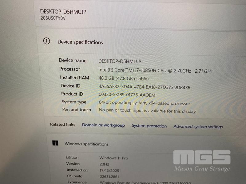 LAPTOP, LENOVO THINKPAD P15 GEN 1 MOBILE WORKSTATION, TYPE 20SU, CORE i7 10850H (10TH GEN) @ 2.7GHz, 48GB DDR4 RAM, 512GB NVMe M.2 SSD, 15.6" WIDESCREEN (1920x1080), 4GB NVIDIA QUADRO T2000 VIDEO, Wi-Fi, BLUETOOTH, WINDOWS 11 PRO INSTALLED & POWER SUPPLY