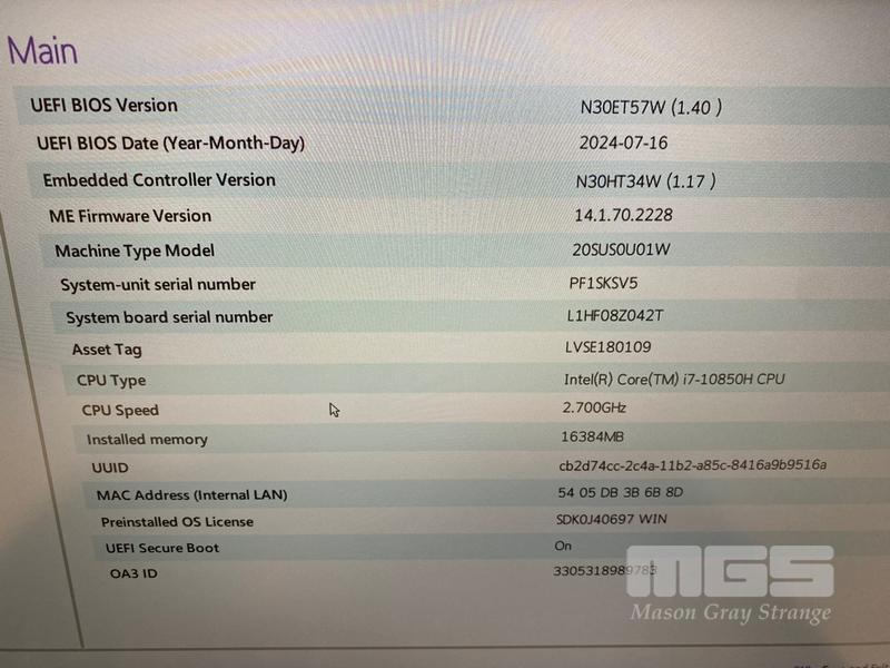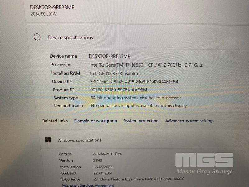 LAPTOP, LENOVO THINKPAD P15 GEN 1 MOBILE WORKSTATION, TYPE 20SU, CORE i7 10850H (10TH GEN) @ 2.7GHz, 16GB DDR4 RAM, 512GB NVMe M.2 SSD, 15.6" WIDESCREEN (1920x1080), 4GB NVIDIA QUADRO T2000 VIDEO, Wi-Fi, BLUETOOTH, WINDOWS 11 PRO INSTALLED & POWER SUPPLY