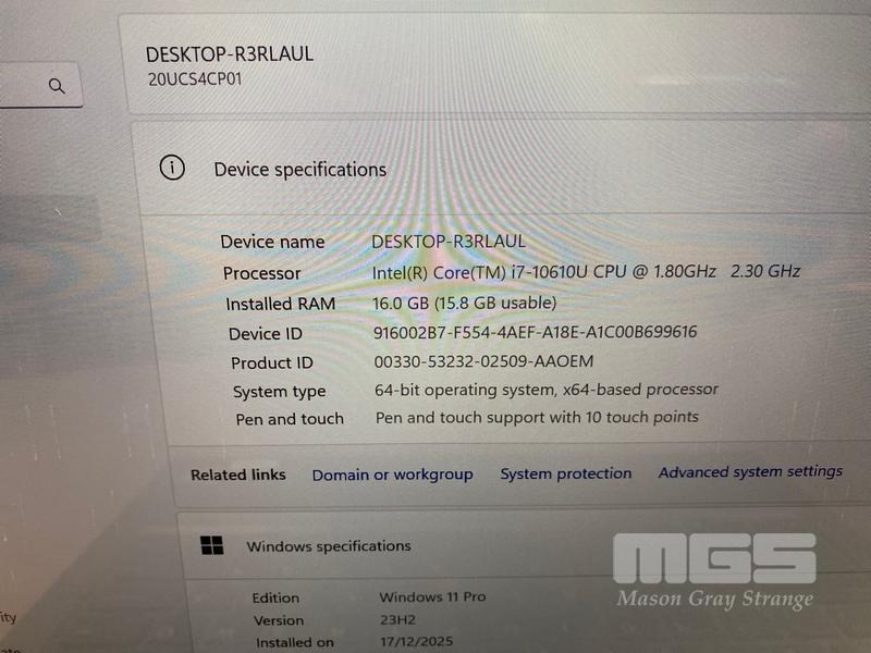 LAPTOP, LENOVO THINKPAD X1 YOGA (5TH GEN), TYPE 20UC, CORE i7 10610U (10TH GEN) @ 1.8GHz, 16GB DDR4 RAM, 512GB NVMe SSD, 14" TOUCHSCREEN (1920x1080), INTEL HD VIDEO, Wi-Fi, BLUETOOTH, STYLUS, WINDOWS 11 PRO INSTALLED (NO USB-C POWER SUPPLY) (NOTE: CASING PEELING, MARKS ON SCREEN)