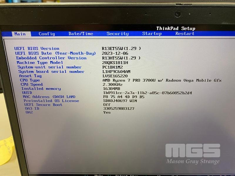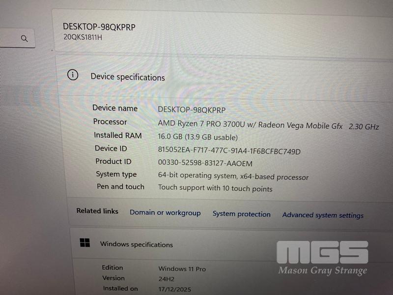 LAPTOP, LENOVO THINKPAD T495s, TYPE 20QK, AMD RYZEN 7 PRO 3700U @ 2.3GHz, 16GB DDR RAM, 1TB NVMe M.2 SSD, 14" TOUCHSCREEN (1920x1080), Wi-Fi, BLUETOOTH, WINDOWS 11 PRO INSTALLED (NO USB-C POWER SUPPLY) (NOTE: MARKS ON SCREEN)