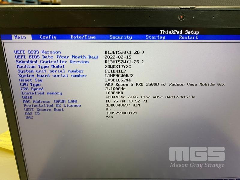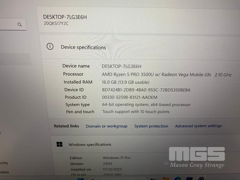 LAPTOP, LENOVO THINKPAD T495s, TYPE 20QK, AMD RYZEN 5 PRO 3500U @ 2.1GHz, 16GB DDR RAM, 512GB NVMe M.2 SSD, 14" TOUCHSCREEN (1920x1080), Wi-Fi, BLUETOOTH, WINDOWS 11 PRO INSTALLED (NO USB-C POWER SUPPLY) (NOTE: MARKS & SPOT ON SCREEN, MINOR DENT IN CASING)