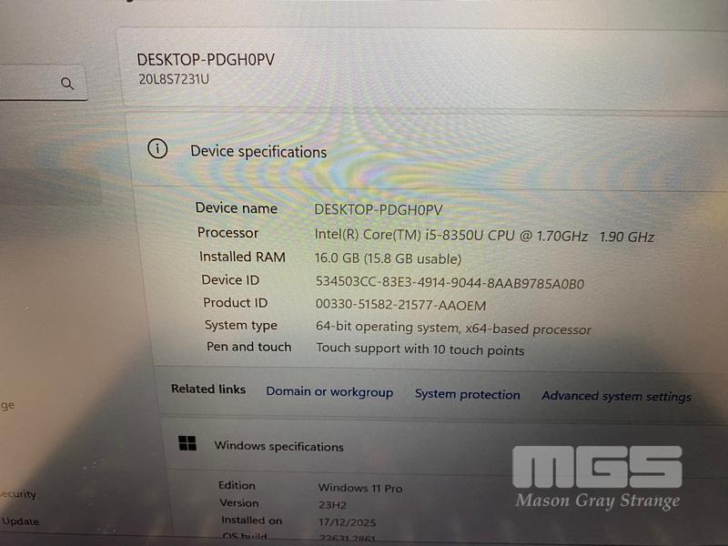 LAPTOP, LENOVO THINKPAD T480s, TYPE 20L8, CORE i5 8350U (8TH GEN) @ 1.7GHz, 16GB DDR4 RAM, 256GB NVMe M.2 SSD, 14" TOUCHSCREEN (1920x1080), INTEL HD VIDEO, Wi-Fi, BLUETOOTH, WINDOWS 11 PRO INSTALLED (NO USB-C POWER SUPPLY) (NOTE: BATTERY NOT CHARGING)