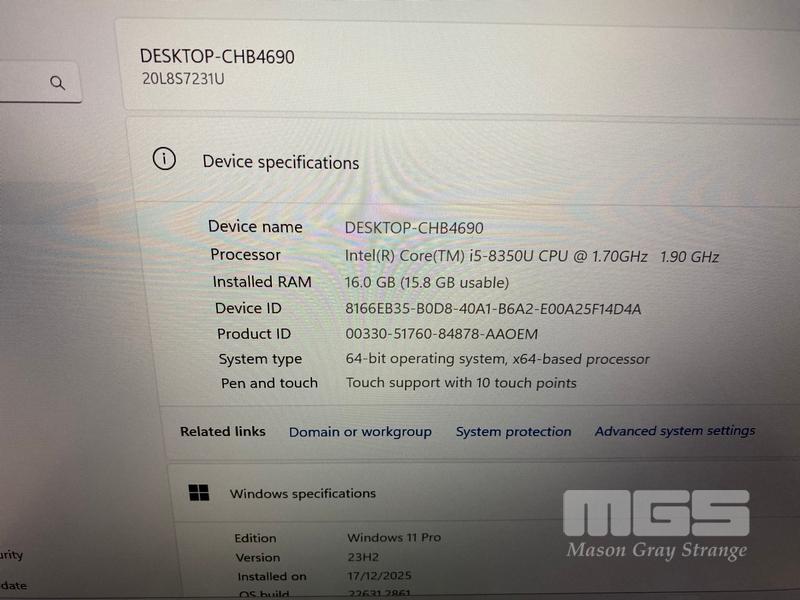 LAPTOP, LENOVO THINKPAD T480s, TYPE 20L8, CORE i5 8350U (8TH GEN) @ 1.7GHz, 16GB DDR4 RAM, 256GB NVMe M.2 SSD, 14" TOUCHSCREEN (1920x1080), INTEL HD VIDEO, Wi-Fi, BLUETOOTH, WINDOWS 11 PRO INSTALLED (NO USB-C POWER SUPPLY)