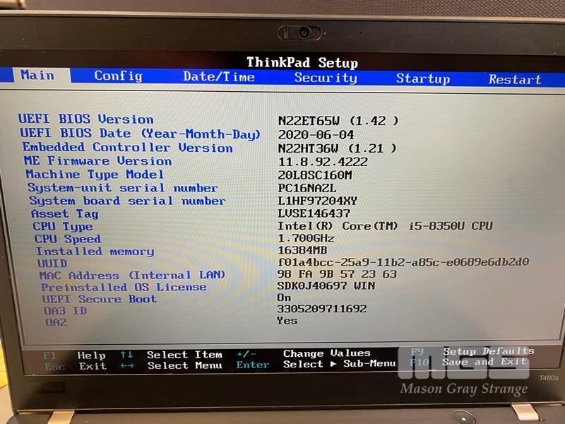 LAPTOP, LENOVO THINKPAD T480s, TYPE 20L8, CORE i5 8350U (8TH GEN) @ 1.7GHz, 16GB DDR4 RAM, 256GB NVMe M.2 SSD, 14" TOUCHSCREEN (1920x1080), INTEL HD VIDEO, Wi-Fi, BLUETOOTH, WINDOWS 11 PRO INSTALLED (NO USB-C POWER SUPPLY) (NOTE: SCRATCH ON SCREEN)