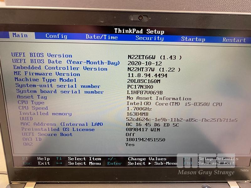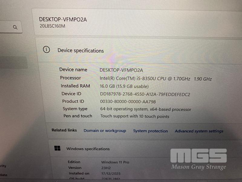 LAPTOP, LENOVO THINKPAD T480s, TYPE 20L8, CORE i5 8350U (8TH GEN) @ 1.7GHz, 16GB DDR4 RAM, 256GB NVMe M.2 SSD, 14" TOUCHSCREEN (1920x1080), INTEL HD VIDEO, Wi-Fi, BLUETOOTH, WINDOWS 11 PRO INSTALLED (NO USB-C POWER SUPPLY) (NOTE: BATTERY NOT CHARGING, MINOR MARKS ON SCREEN, MINOR CRACK LINE ON CASING)