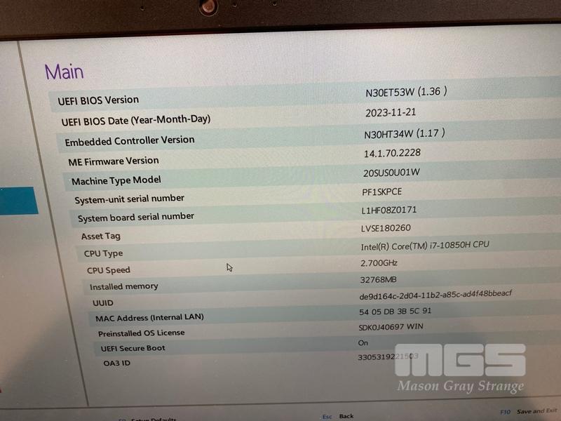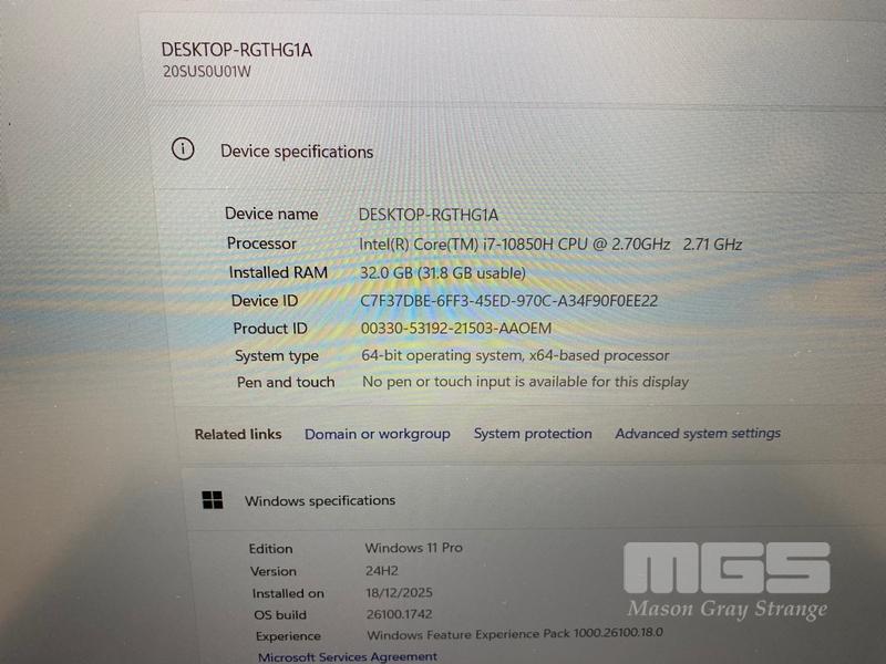 LAPTOP, LENOVO THINKPAD P15 GEN 1 MOBILE WORKSTATION, TYPE 20SU, CORE i7 10850H (10TH GEN) @ 2.7GHz, 32GB DDR4 RAM, 512GB NVMe M.2 SSD, 15.6" WIDESCREEN (1920x1080), 4GB NVIDIA QUADRO T2000 VIDEO, Wi-Fi, BLUETOOTH, WINDOWS 11 PRO INSTALLED (NO POWER SUPPLY) (NOTE: MARKS ON SCREEN, CRACK LINES ON CASING)