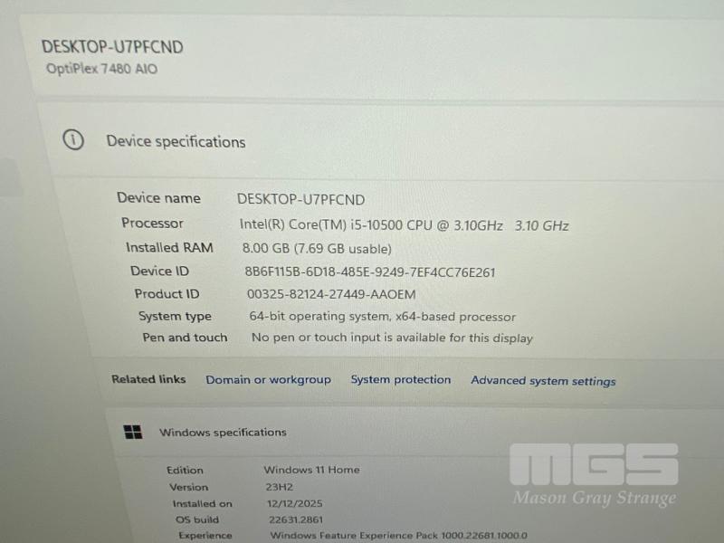 ALL-IN-ONE PC, DELL OPTIPLEX 7480, CORE i5 10500 (10TH GEN) @ 3.1GHz, 8GB DDR4 RAM, 512GB NVMe M.2 SSD, INBUILT 23.8" FHD WIDESCREEN (1920x1080), INTEL HD VIDEO, WEBCAM, 5 x USB, 1 x USB-C, Wi-Fi, BLUETOOTH, WINDOWS 11 HOME INSTALLED, KEYBOARD & MOUSE
