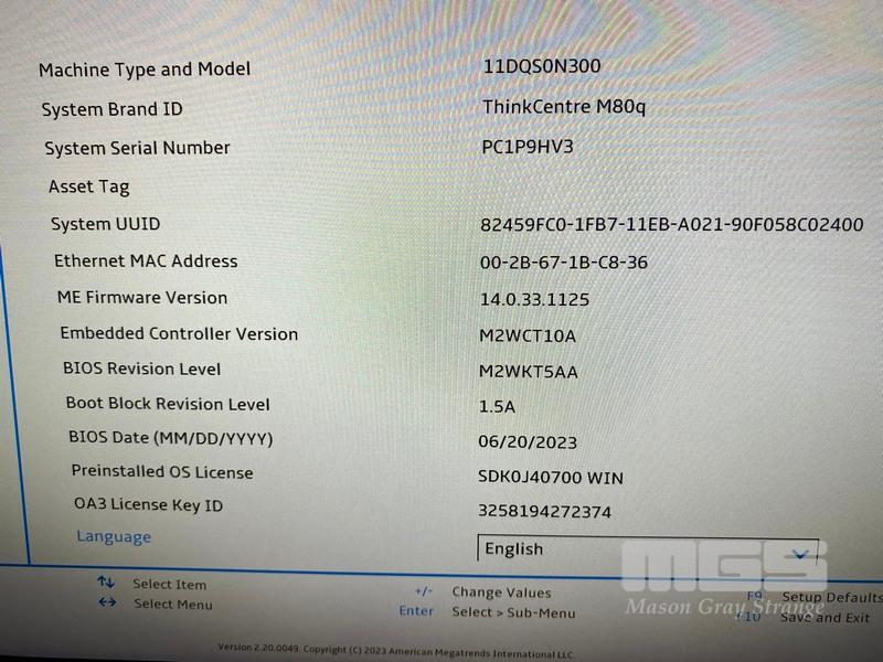 DESKTOP PC, LENOVO THINKCENTRE M80q TINY, TYPE 11DQ, CORE i5 10400T (10TH GEN) @ 2GHz, 8GB DDR4 RAM, 256GB NVMe M.2 SSD, INTEL UHD GRAPHICS 630, WINDOWS 11 HOME INSTALLED & POWER SUPPLY (NO KEYBOARD, NO MOUSE)