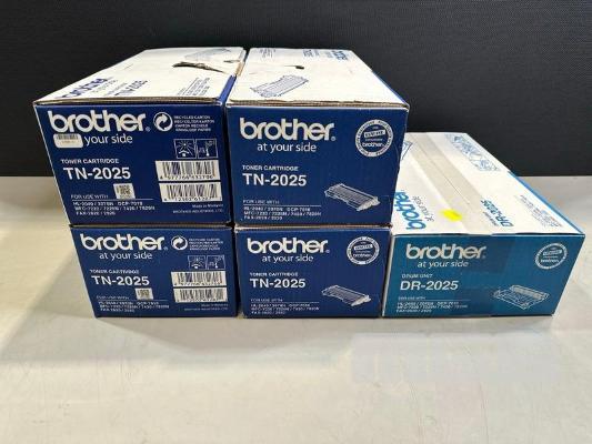 4 x BROTHER TN-2025 TONER CARTRIDGES 1 x BROTHER DR-2025 DRUM CARTRIDGE