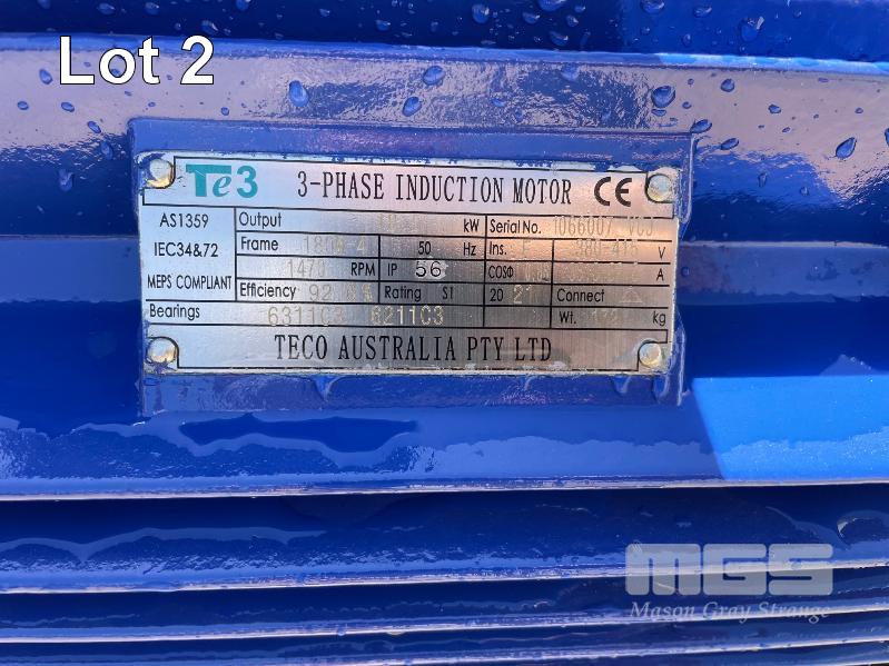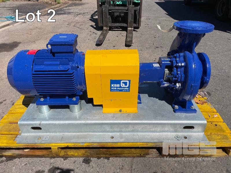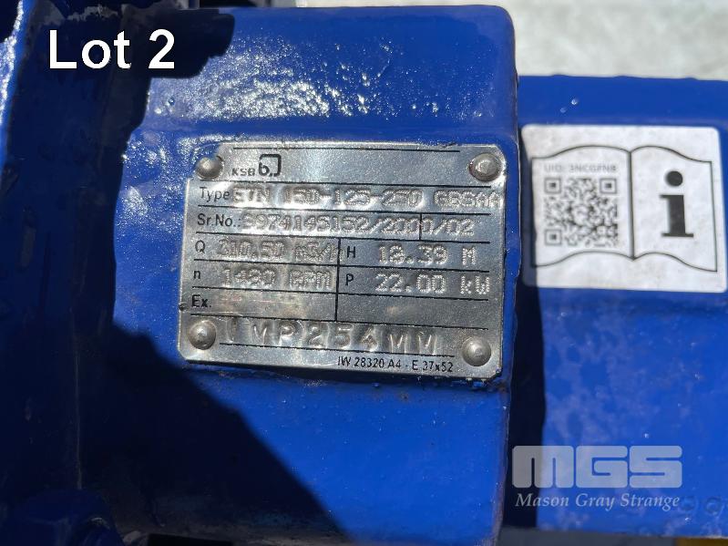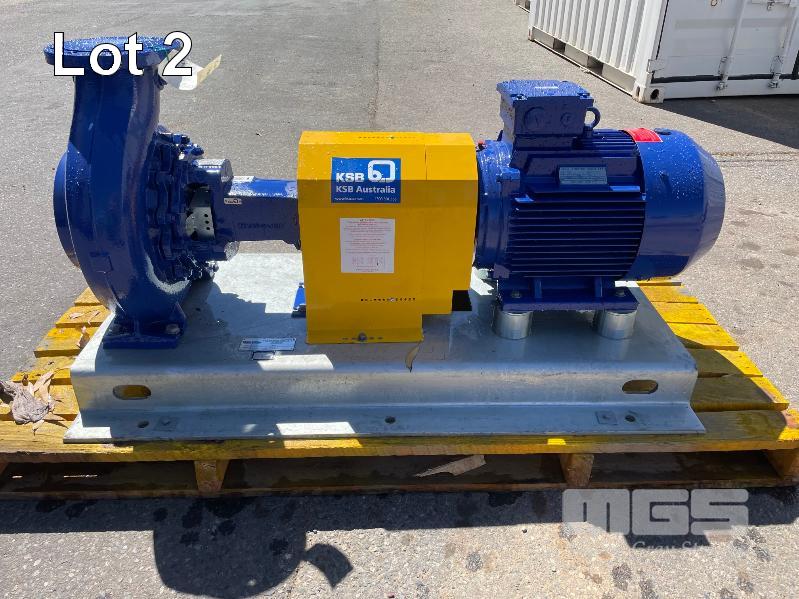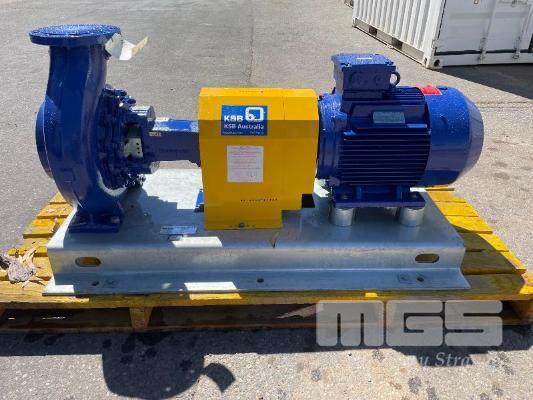KSB HIGH VOLUME INDUSTRIAL WATER PUMP WITH 3 PHASE INDUCTION MOTOR, INDUCTION MOTOR: 18.5kW, SERIAL: 10656007 VCJ, FRAME: 180M-4, RPM: 1470, DOM: 2021, 415V KSB PUMP: TYPE: ETN 150-125-250 GBSAA, Q: 310.50m3/h, n: 1480 rpm, H: 18.39, P: 22.00kw ON SKID BASE