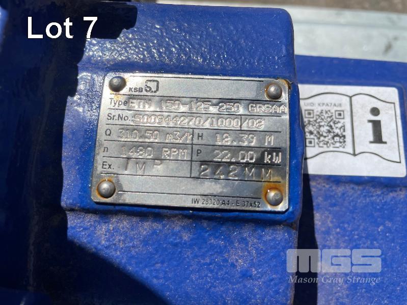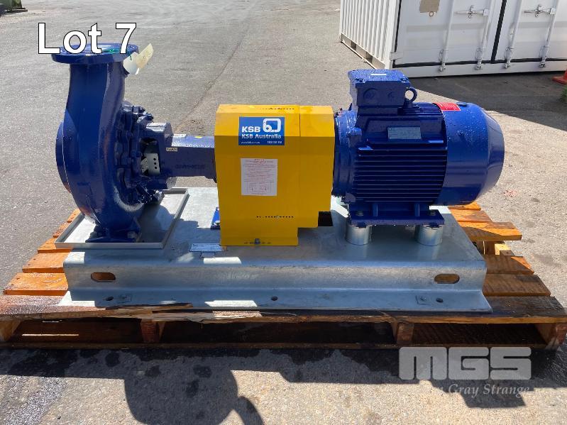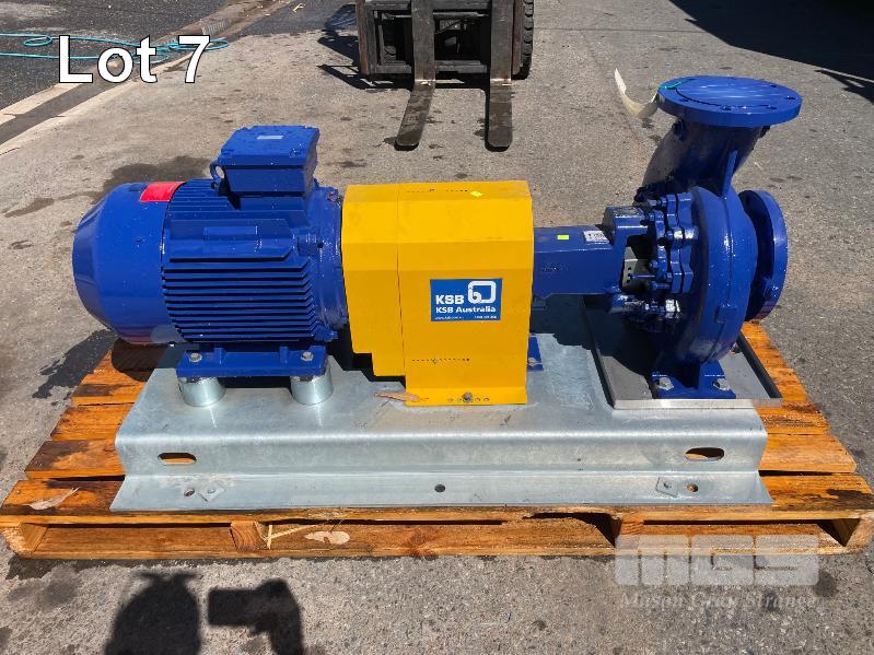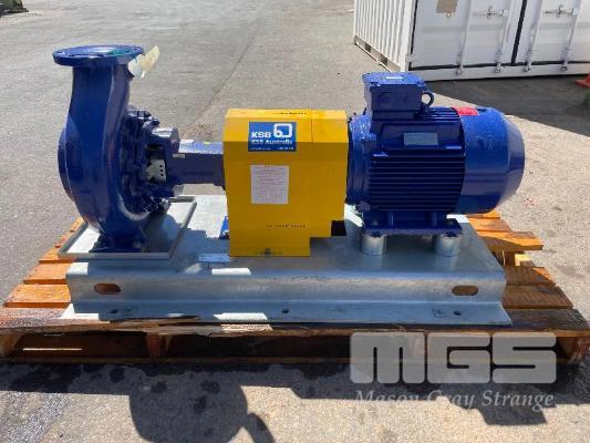 KSB HIGH VOLUME INDUSTRIAL WATER PUMP WITH 3 PHASE INDUCTION MOTOR, INDUCTION MOTOR: 18.5kW, SERIAL: 1066782 VDJ, FRAME: 180M-4, RPM: 1470, DOM: 2021, 415V KSB PUMP: TYPE: ETN 150-125-250 GBSAA, Q: 310.50m3/h, n: 1480 rpm, H: 12.39, P: 22.00kw ON SKID BASE