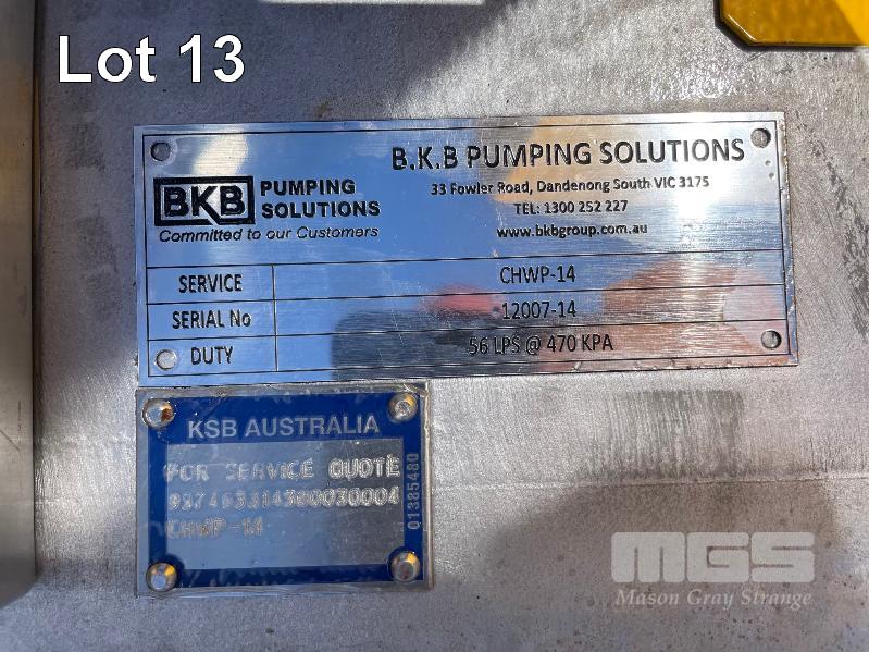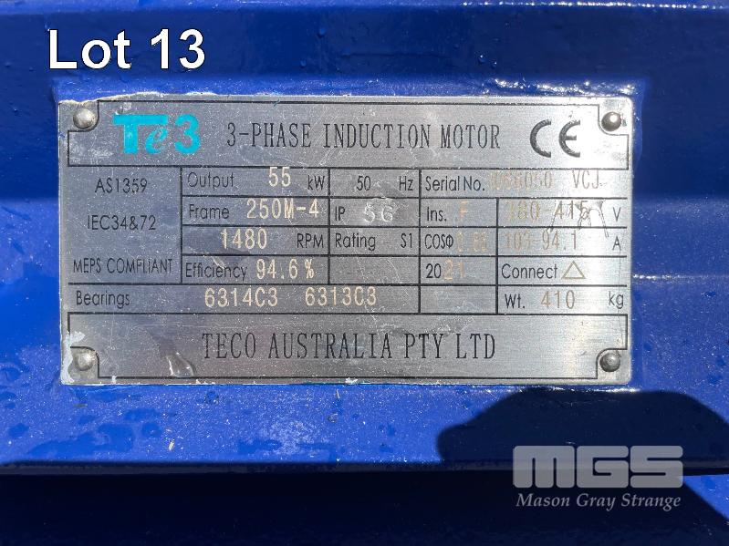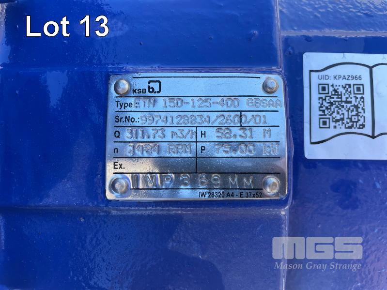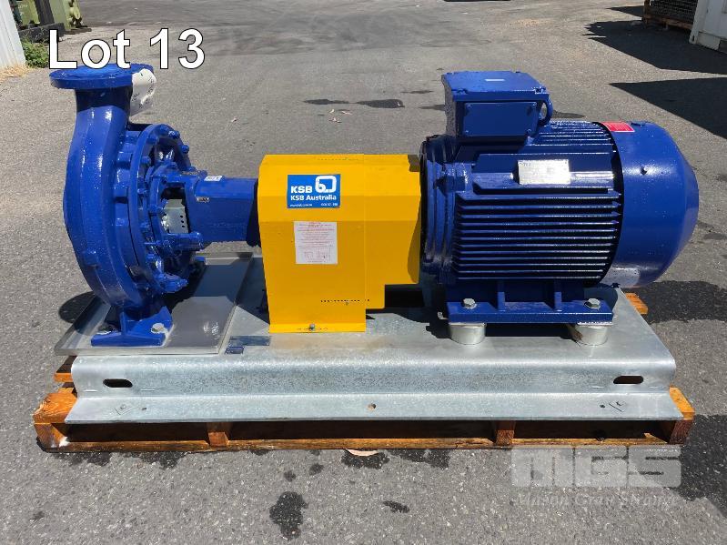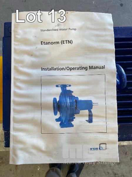 KSB HIGH VOLUME INDUSTRIAL WATER PUMP WITH 3 PHASE INDUCTION MOTOR, INDUCTION MOTOR: 55kW, SERIAL: 1066050 VCJ, FRAME: 250M-4, RPM: 1480, DOM: 2021, 415V KSB PUMP: TYPE: ETN 150-125-400 GBSAA, Q: 311.73 m3/h, n: 1484 rpm, H: 52.31, P: 75.00kw ON SKID BASE, WITH INSTALLATION/ OPERATING MANUAL