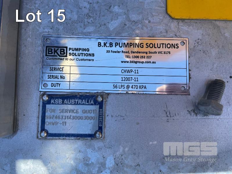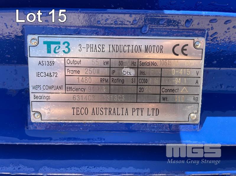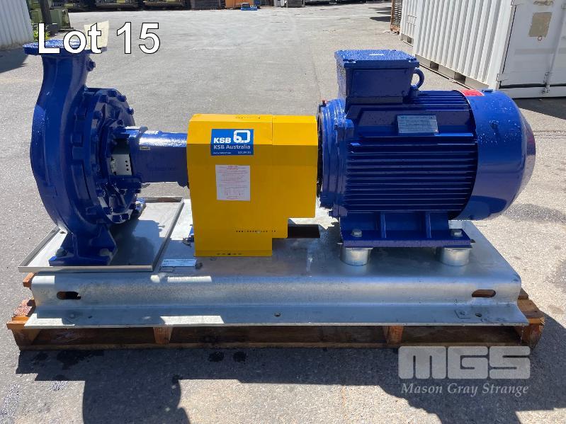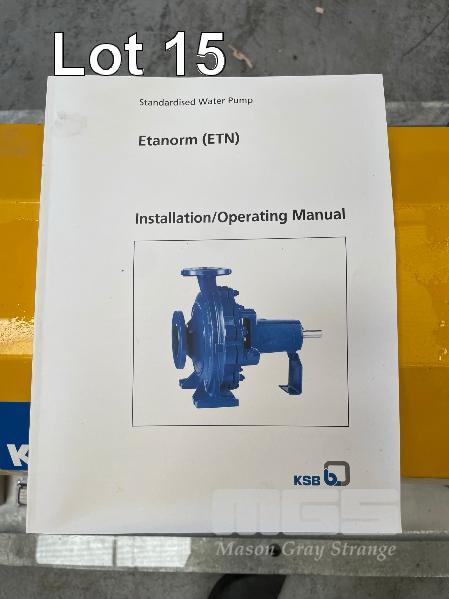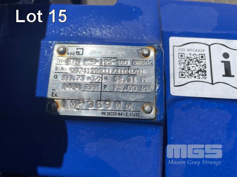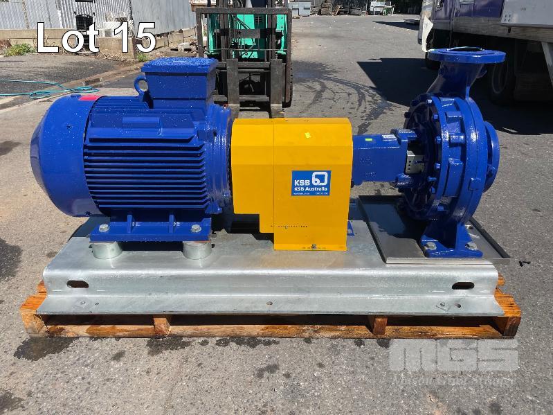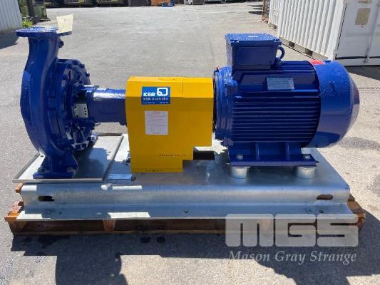 KSB HIGH VOLUME INDUSTRIAL WATER PUMP WITH 3 PHASE INDUCTION MOTOR, INDUCTION MOTOR: 55kW, SERIAL: 1061904 UKJ, FRAME: 250M-4, RPM: 1480, DOM: 2021, 415V KSB PUMP: TYPE: ETN 150-125-400 GBSAA, Q: 311.73m3/h, n: 1484 rpm, H: 52.31, P: 75.00kw ON SKID BASE WITH INSTALLATION/ OPERATING MANUAL