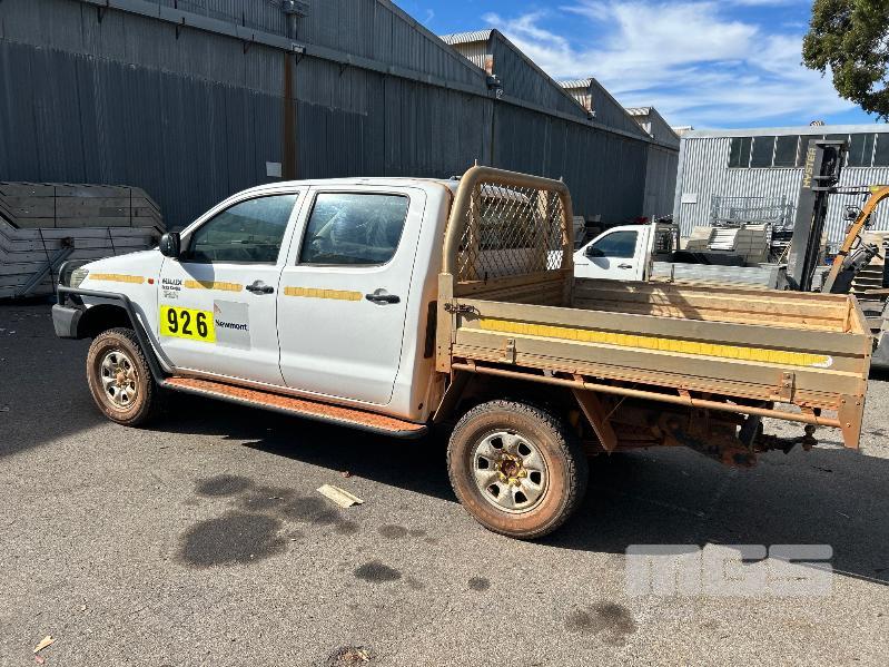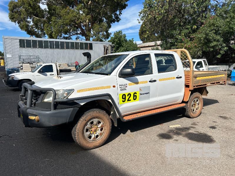 2011 TOYOTA HILUX KUN26R 150 SERIES DUAL CAB TRAY TOP 4x4 REG: NO PLATES VIN: MR0FZ22G601056851 ODO: 157,988kms SHOWING 3.0LITRE TURBO DIESEL, MANUAL TRANSMISSION, WHITE DUCO, 4 DOORS, 6 SEAT, 4x4 ABS, AIR BAG, AIR CON, ALLOY TRAY, BULL BAR, CARGO BARRIER, DECALS, POWER STEERING, SIDE STEP, SPARE WHEEL, SPOT LIGHTS, TOW BAR, SNORKEL AIR INTAKE BATTERY ISOLATION SWITCH KEY #45 (WITH 1 KEY/S)
