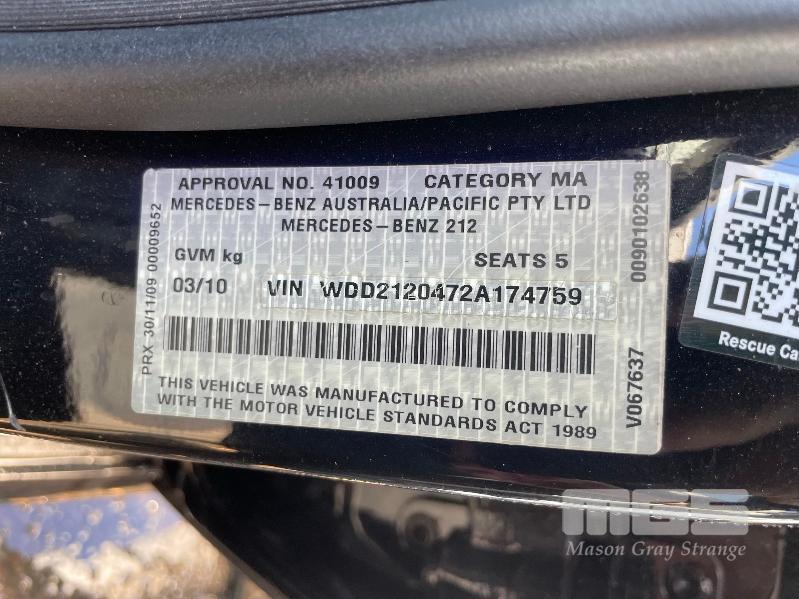 2010 MERCEDES BENZ CGI AVANTGARDE, 212 SEDAN RWD REG: NO PLATES VIN: WDD2120472A174759 1.8L, 5 SPEED AUTO, PETROL, BLACK, 4 DOORS, 5 SEAT, RWD NO KEYS, NO BATTERY, REPAIRABLE WRITE OFF, WATER DAMAGE (NO PAPERS, NO OWNER'S MANUAL, NO SERVICE BOOKS)