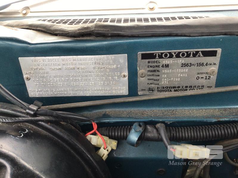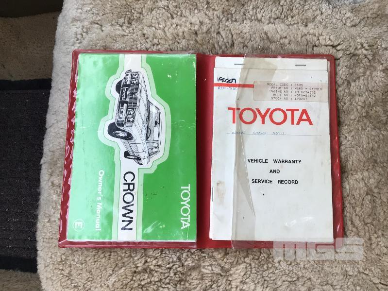 1978 TOYOTA CROWN SUPER SALOON, MOD: MS85-HGFA, ID: MS85-055262, REG: S0S808, 4M ENGINE, RECENT CYLINDER HEAD OVERHAUL, ODO: 96,000km, IN ORIGINAL CONDITION INCLUDING PAINT, TRIM, (NOTE: PLASTIC STILL ON DOOR TRIM), RUNS & DRIVES WITH BOOKS, PAPERS & KEY