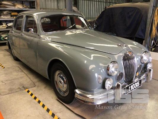 1958 JAGUAR MK1, 3.4L 6 CYLINDER, AUTO, GREY DUCO, RED VINYL & CARPET, RUNS & DRIVES WITH PAPERS & KEY (NOTE PLATES NOT INCLUDED)