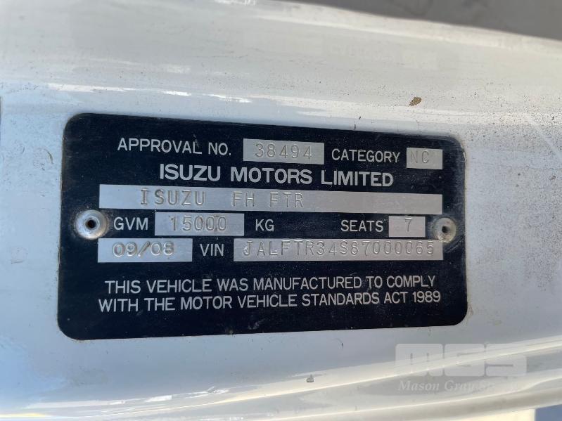 2008 ISUZU FH FTR 900 LONG EURO V 4X2 CRANE TRUCK REG: XS49IY (SA) (EXPIRY: 19/02/2026) VIN: JALFTR34S87000065 ODO: 271,044 GVM: 15000 GCM: 24000 SITEC 225 SERIES 2, 6 SPEED MANUAL, DIESEL, 4 DOORS, 7 SEAT, AIR CON, AIR KIT, CB RADIO, HYDRAULICS, STEEL RIMS, STEEL TRAY, 6m STEEL TRAY WITH DROP SIDES, 2 x TOOL BOXES, NOTE: FRONT BUMPER DAMAGE & FRONT RHS PLASTIC DAMAGE WITH FASSI HYDRAULIC CRANE, MOD: F80A24, SERIAL: 7139, NEXT INSPECTION DUE: 22/09/2029 (NO PAPERS, WITH 1 KEY/S, NO OWNER'S MANUAL, NO SERVICE BOOKS)